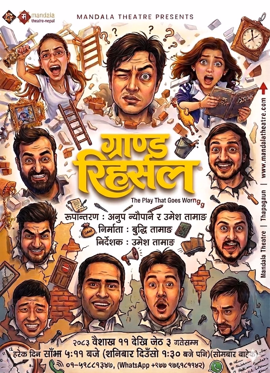 lines, cues are missed, and misunderstandings spiral out of control.The brilliance of the play lies in its precise timing, exaggerated physical humor, and escalating of accidents that turn a “serious” production into an unforgettable comedic experience.Beneath the laughter, the play highlights the passion, dedication, and vulnerability of performers who continue despite constant failure, reflecting the resilience of artists and the unpredictable nature of live theatre.Grand Reherasal is a tribute to theatre itself—its risks, its magic, and its ability to connect audiences through shared laughter. With its fast-paced action, universal humor, and visually engaging stagecraft, the play appeals to a wide range of audiences regardless of age or theatrical background. It offers pure entertainment while reminding viewers that imperfection is often the heart of creativity.