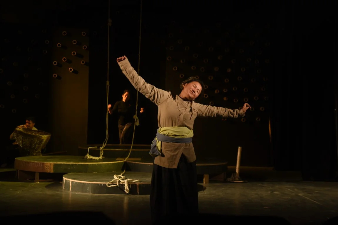 Set in Western Nepal’s Kham Magar community, “Kubhindoko Katha (Story of Ash Gourd), a folklore-based play takes us close to the ultimate truth of mother nature. It celebrates the fact that nature has made us different from one another with our strengths and weaknesses and emphasizes the need to accept each other’s existence. It acknowledges the difference in our appearances with different abilities and roles in family and society. It regards such diversities as nature’s plan to complement one’s weakness with another’s strength to ensure everyone’s role is vital, be it small or big for the smooth functioning of this world. It also advocates that diversity and coexistence is something that makes our society resilient and vibrant where the needs and existence of all are cared for and respected. It is one of the seven plays developed through the five monthly long playwriting projects organized by Mandala Theatre-Nepal in 2022. The play was staged as the closing performance of 2nd Nepal International Theatre Festival 2022.